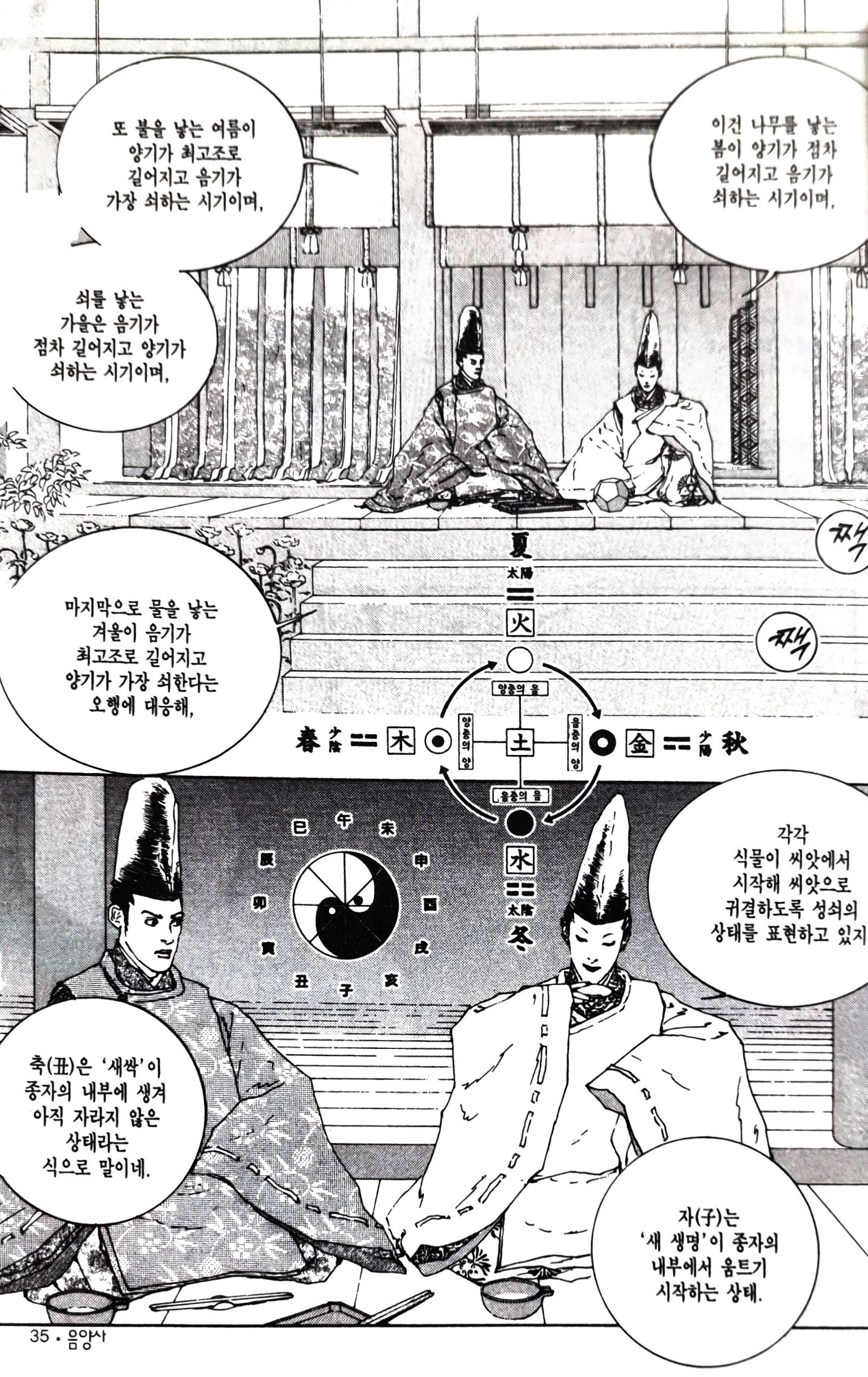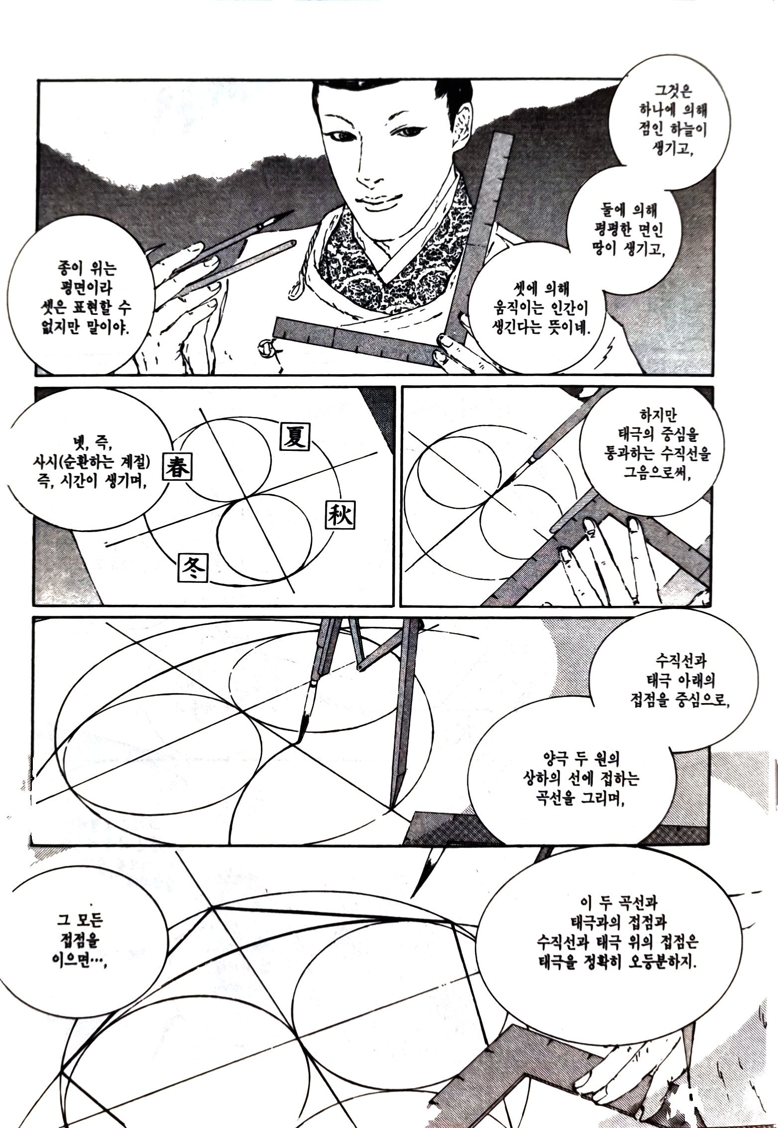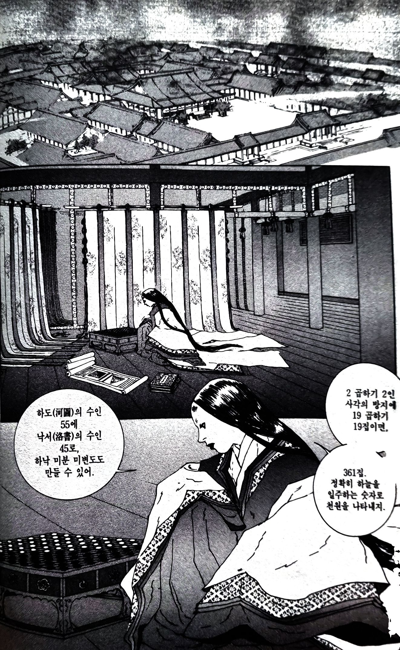 - '반상에 하늘을 편다. 자미(紫微), 좌원우원(左垣右垣), 천주(天柱), 오제(五帝), 북두(北斗)... 전에도 사각사계에 결계를 쳤었어...'