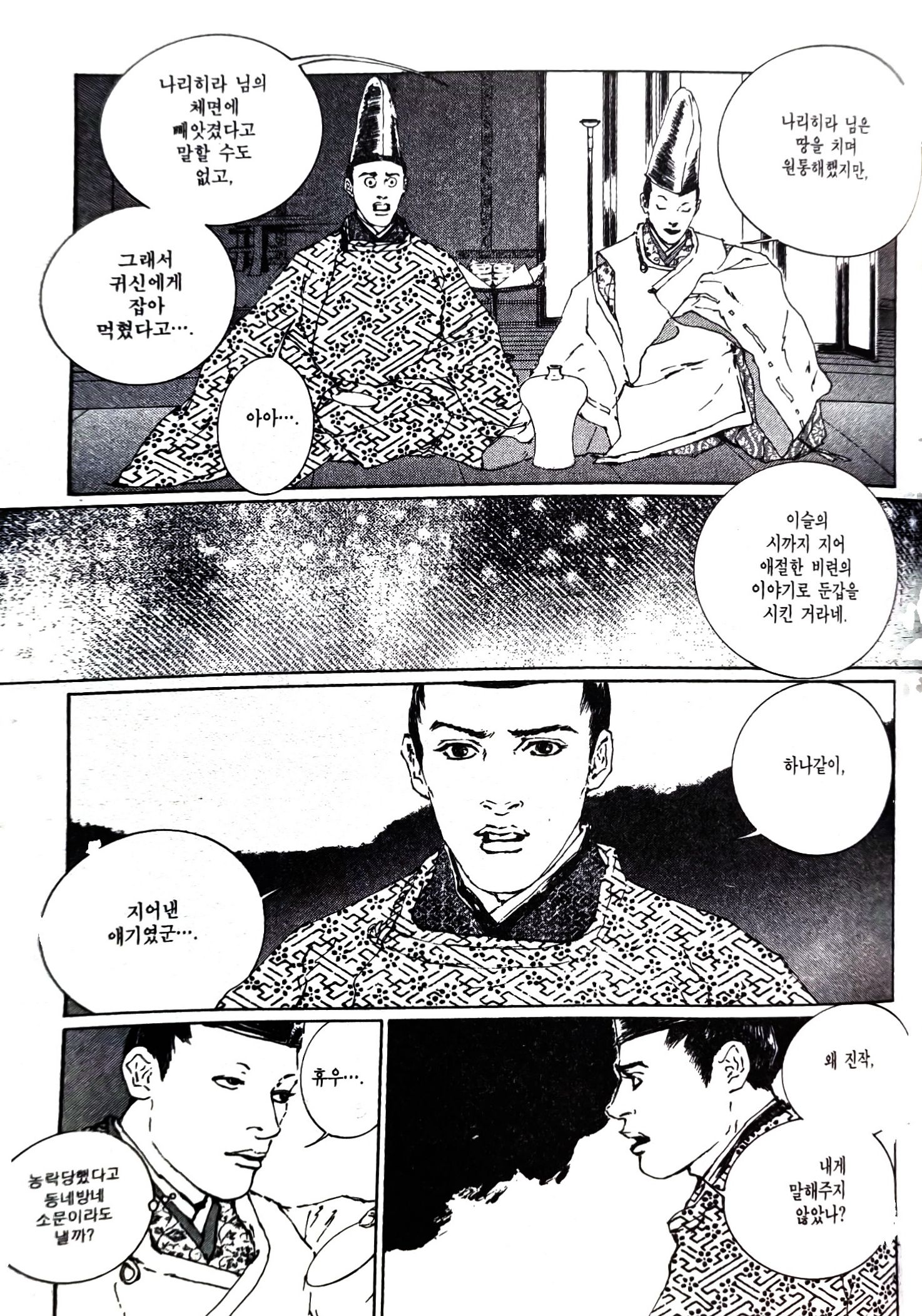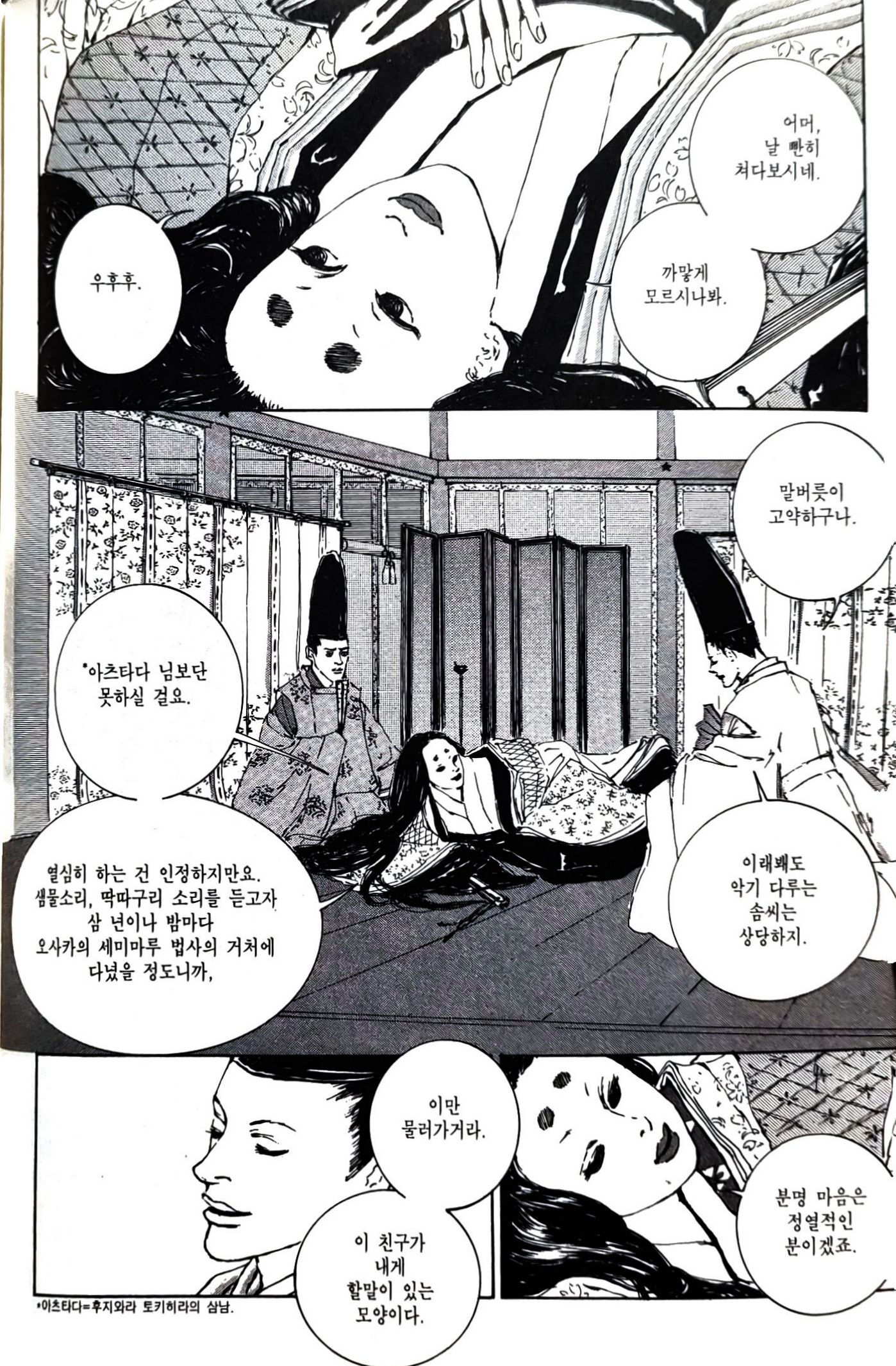 "이놈! 오긴 뭐가 온다고 소란이야. 쉬시는데 방해하지 마!"