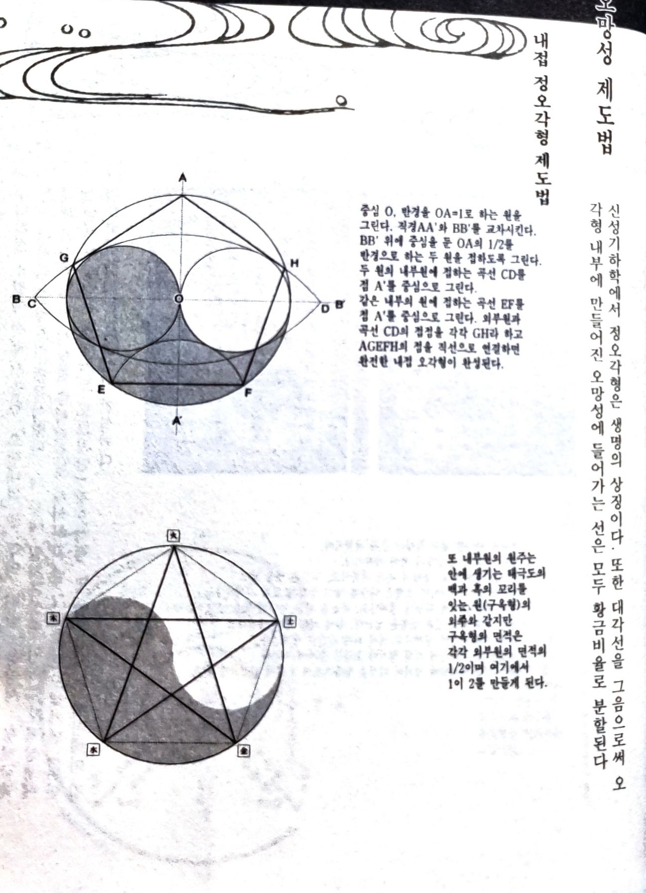 - 헤이안 도읍 조영 때 경성을 영원히 지속될 황금비율의 나선을 내재시키는 정오각형안에 정확히 넣으려고 계획했던 것인가는 아직은 알 수 없다.