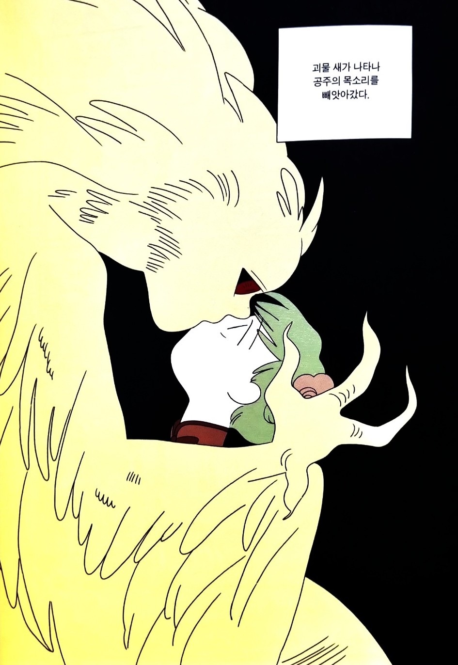 - 괴물 새가 나타나 공주의 목소리를 빼앗아갔다.