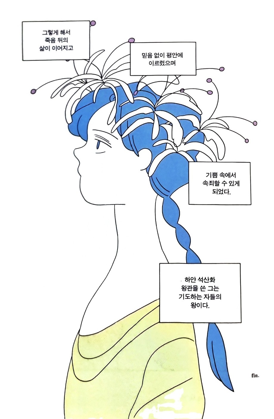 - 그렇게 그들은 왕궁 한구석에서 함께 살았다. 소망들은 모두 말라비틀어져 아주 가끔씩만 바스락바스락 소리를 내었다.