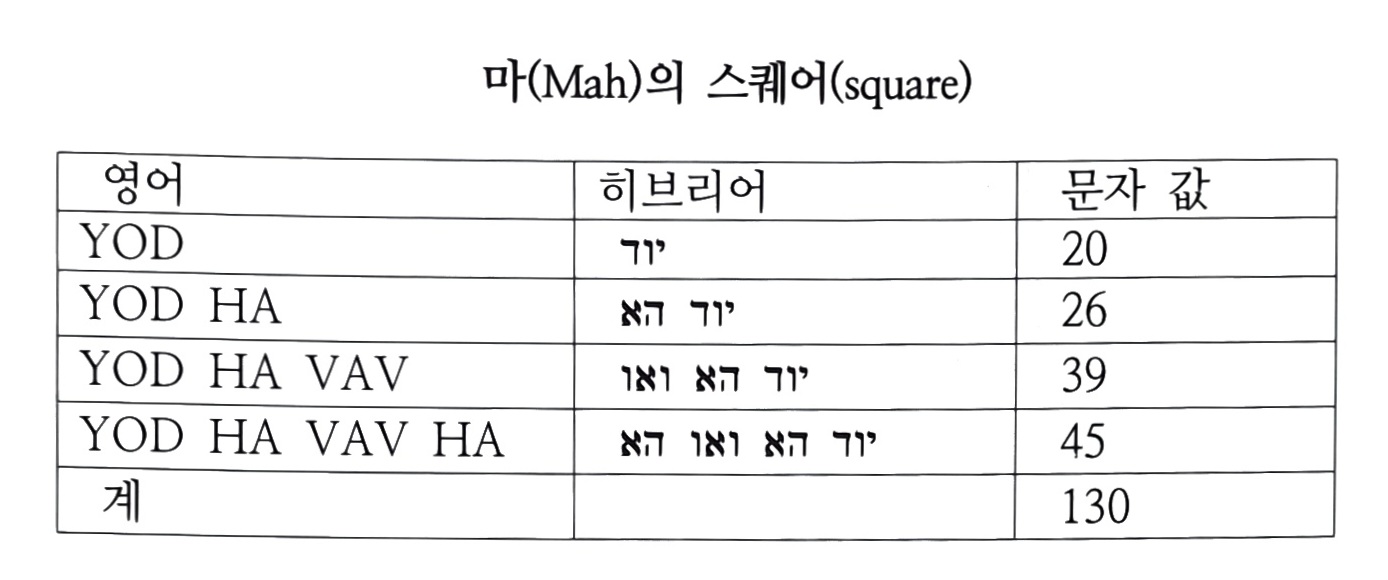 - 그러므로 미츠바의 앞 두 개 문자 요드헤(Yod Heh, יה)는 공의 개념처럼 숨겨진 것이고 뒤의 두개 문자 바브헤(Yav Heh, וה)는 드러난 것이다.