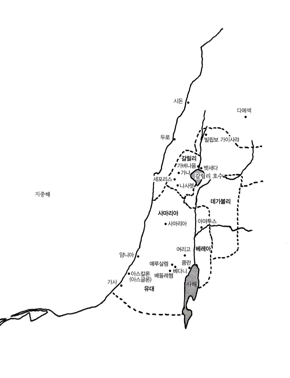 "예루살렘에서는 그리스어를 쓰지 않습니다." 알패오 삼촌이 말했다. "갈릴리에서 우리는 히브리어로 성서를 읽었습니다. 율법 선생이라 자처하시는데, 히브리어를 알아듣기나 하는지요?" 글레오파 외삼촌이 말했다.