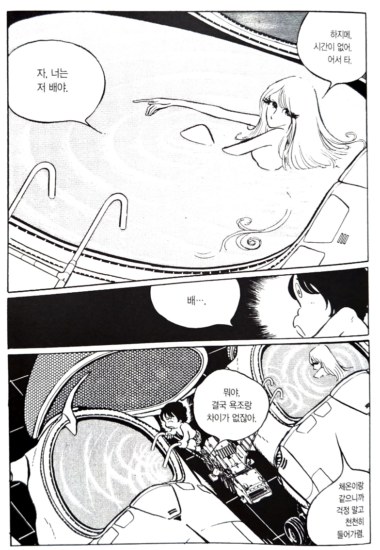 개인적으로 강한 인상을 받았던 장면은 지하공동에 건조된 쉘터와 야요이와 하지메가 탑승하는 액화캡슐. 한 장면을 더 추가한다면 지하로 반전되는 천문연구소 정도를 들 수 있겠다. <에반게리온>은 <1000년 여왕>의 영향을 깊게 받았던 것인가?! 아니면 일본인들에게 이건 익숙한 상상인가?! 어쩌면... 태아와 모체가 호르몬 등을 통해 감정 교류도 가능하다는 점을 고려하면, 어쩌면 액화캡슐은 낯선 개념은 아닐지도 모른다... 하지만 여전히 놀랍다...!