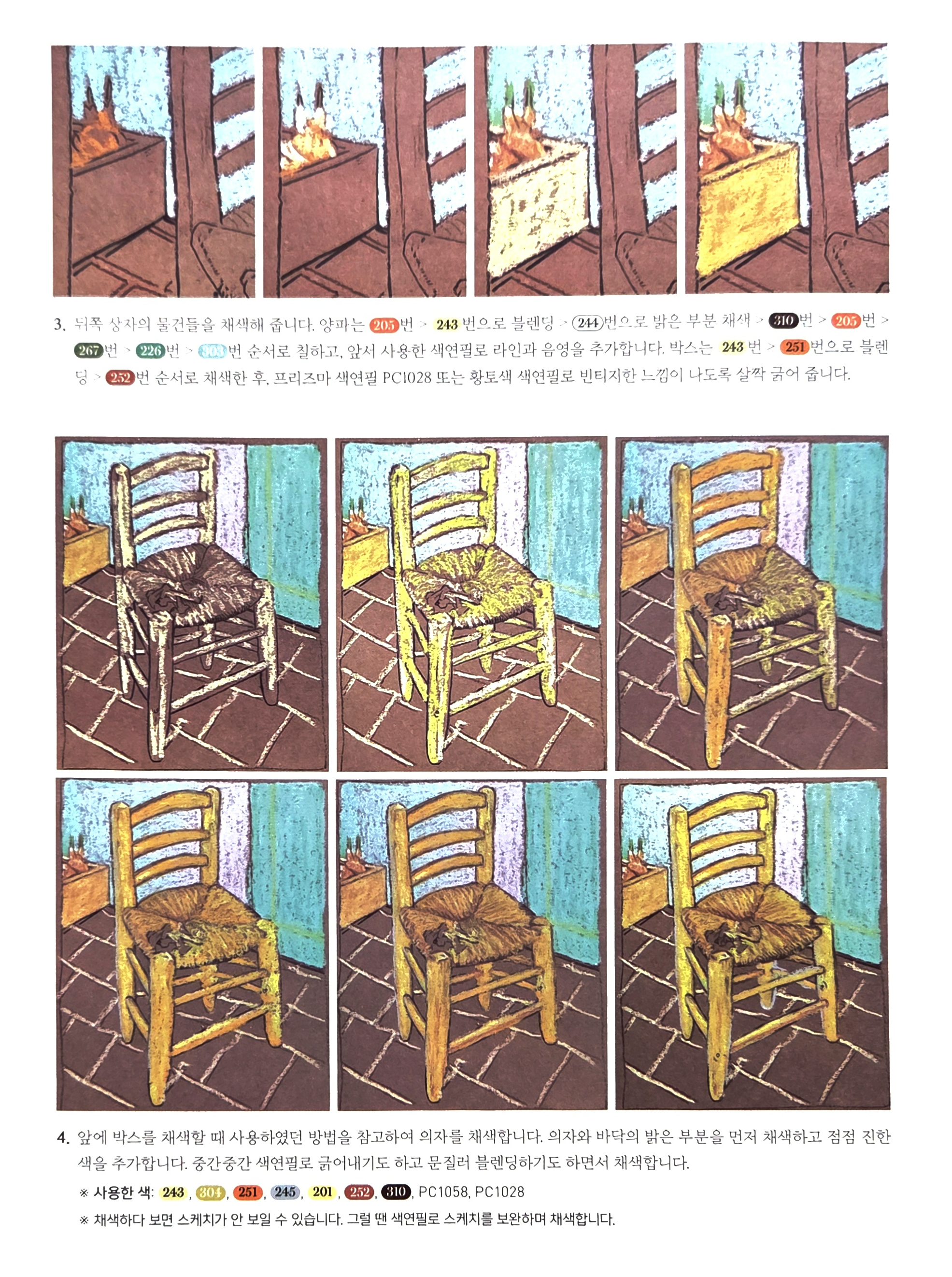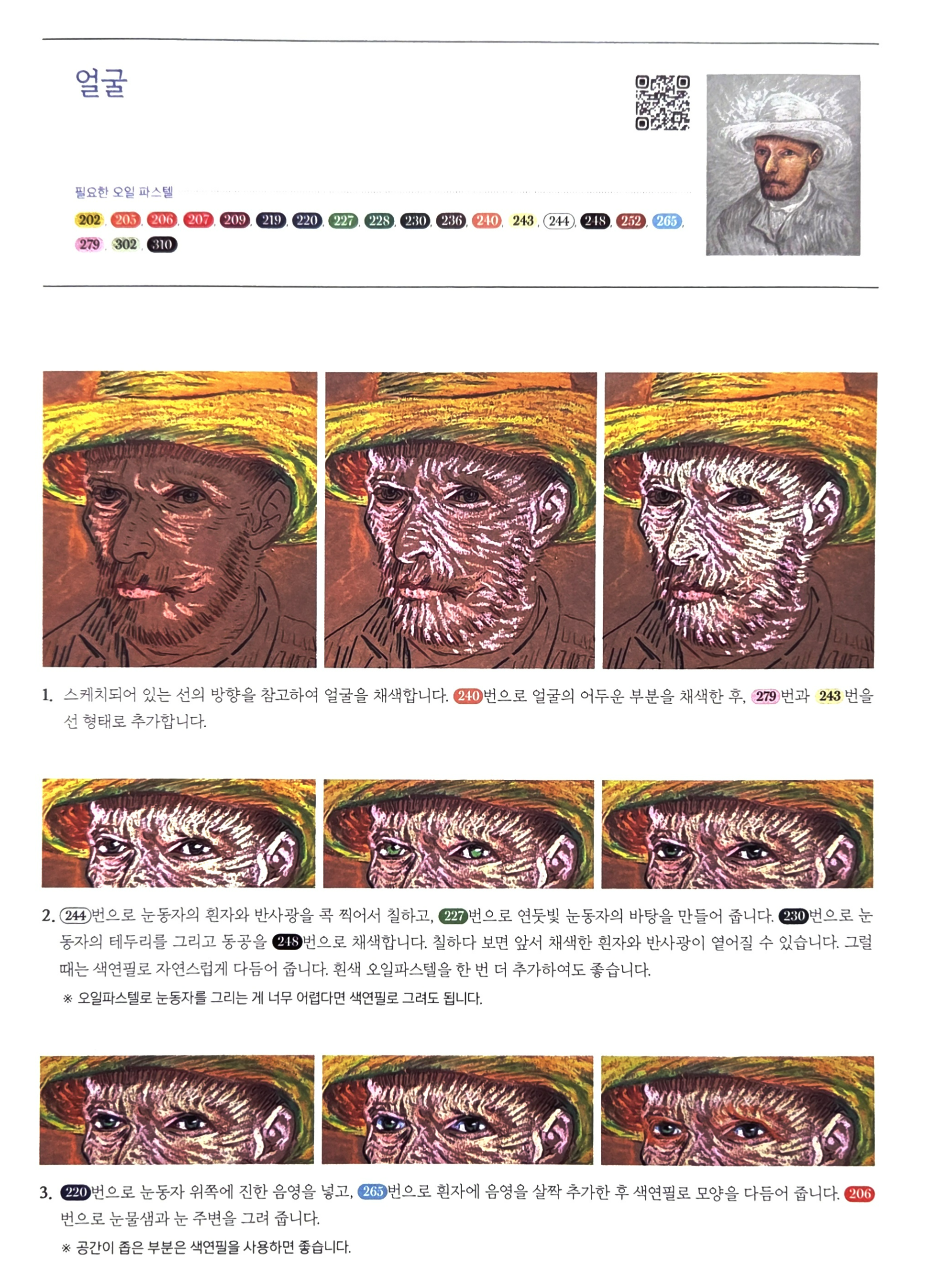 해서 찾아 읽은 책이 <누구나 쉽게 반 고흐 오일파스텔>. 기초 기법도 잘 설명되어 있어 오일파스텔을 시작해 보려는 분들께 추천하고 싶은 책이다.
