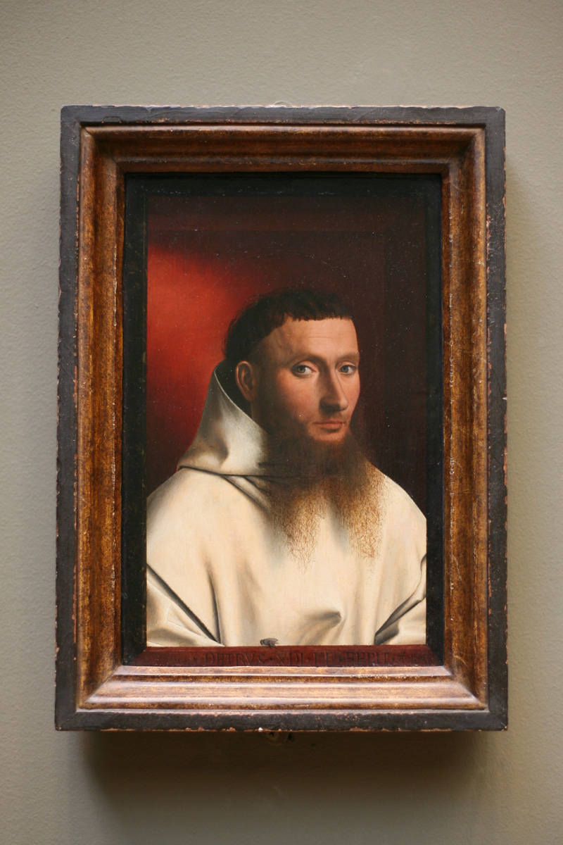 - 크리스투스는 공간의 치밀한 구축에 매료되어 저지대 국가 최초로 체계적인 원근법(투시도법)을 사용한 인물이라고 여겨진다. 그의 대표작 중 하나로 <그리스도의 탄생> (1452)이 있는데, 이 제단화는 얀 반 에이크에게 물려받은 빨강, 초록, 주황, 노랑, 검정 등 인물의 복식을 돋보이게 하는 다채로운 색상 배합과 완벽한 원근법을 통한 화면 구성이 인상적이다. 또한 <카르투지오회 수도사의 초상>(1446)에서는 트롱프뢰유 Trompe L'oeil, 눈속임 그림 수법으로 그려진 액자 위에 파리 한 마리가 묘사되어, 보는 이들에게 마치 파리가 실제로 그림 앞에 앉아있는 듯한 착각을 불러일으키게 한다.