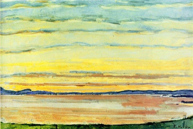- <제네바 호수의 일몰>은 사랑하는 이를 떠나보낸 슬픔이 느껴지기보다 환상적이고 아름다운 풍경이어서 오히려 이질적이다. 그는 호수 위로 해가 지는 모습을 바라보며 조화와 질서, 죽음과 영원을 느꼈고, 수평성을 통해 죽음과 완전히 자연으로 돌아가는 영원을 동시에 표현한다. 호들러는 사랑하는 이들의 죽음을 숱하게 목격하며 죽음을 능동적으로 받아들이기로 마음먹었고 그랬기에 오히려 평온한 그림을 그릴 수 있었다.