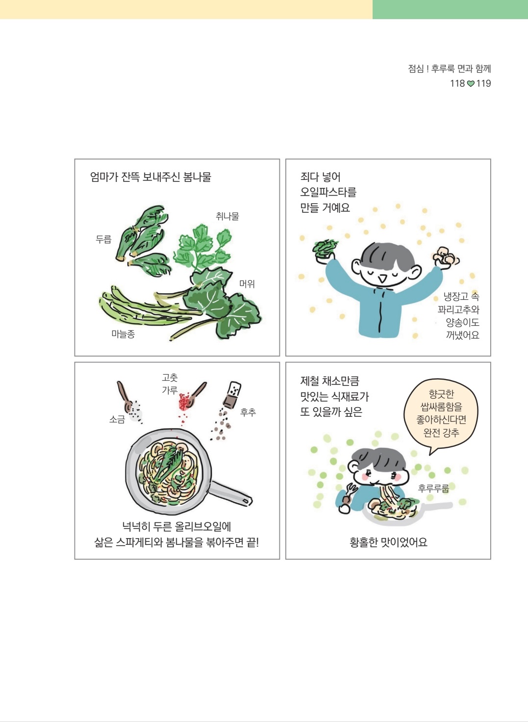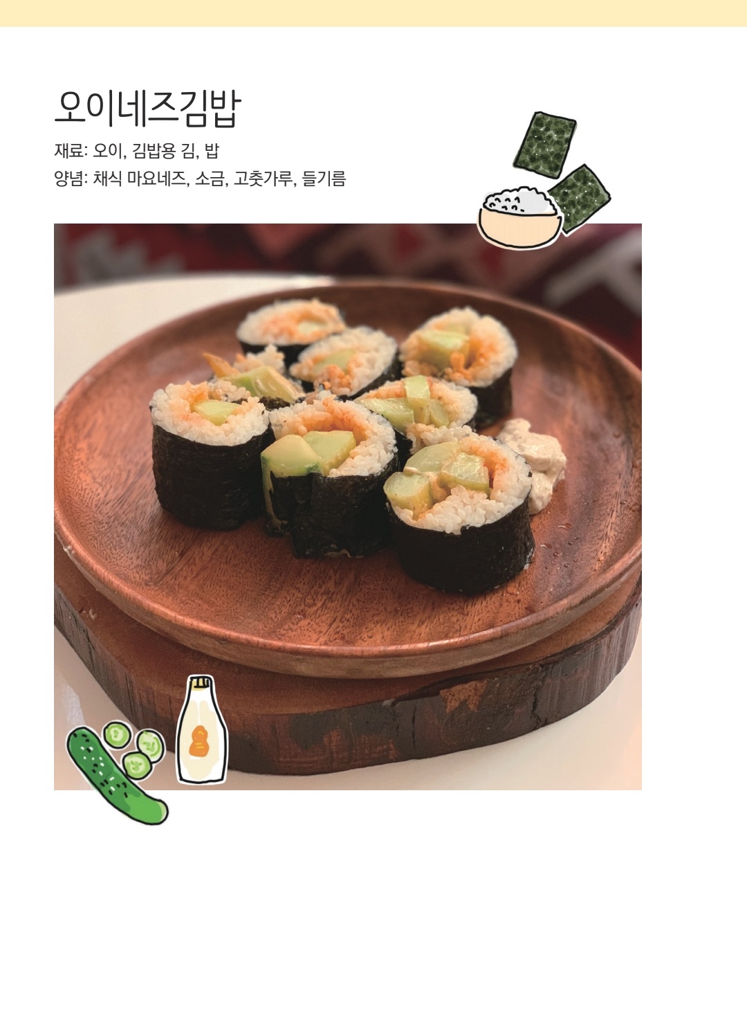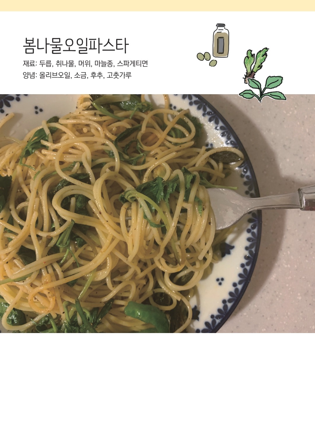 기본 조리법을 익혀둔다면 세부적인 재료는 제철 식자재 등으로 충분히 응용이 가능할 듯 하다.