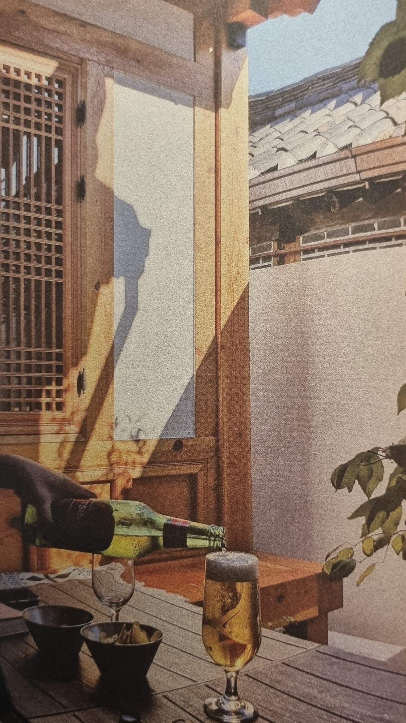 - 대신 우리는 한옥에서 사는 우리의 모습을 그렸다. 마당 뒷마루에 앉아 해님과 달님을 벗 삼아 술도 마시고 차도 마셔야지. 마당 한편에 귀여운 해태상을 놓고, 매화나무를 심자고 이야기했다. 욕실에는 작은 욕조가 있으면 좋겠다고도 말했다. 어차피 작은 집이니 군더더기 없이 필요한 것만 두고 살자고 했다. 술을 담가 먹자는 말도 나왔다. 마당에 김칫독도 묻고, 커튼 대신 예쁜 보자기를 창에 걸어두고 싶다는 생각이 들었다. 한식을 제대로 배워서 자격증을 따고, 동네 공방에서 무엇이든 배워보자고 했다. 전국의 공예 장인을 찾아 떠나는 여행도, 시골 동네 고물상만 돌아다녀도 재밌겠다는 이야기를 나눴다.
